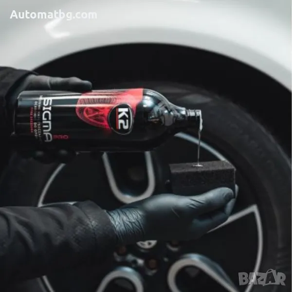 K2 SIGMA PRO за полиране и защита, перфектна комбинация. Смес от скъпоценни масла, синтетични полимери и хранителни вещества, съставени за да придадат блясък и необичайно дълбоко, безкрайно черен ефект на мокра гума.