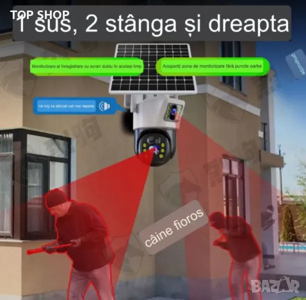 Соларна двойна камера за видеонаблюдение, слот за сим карта 4G 3K Ultra HD 30403780