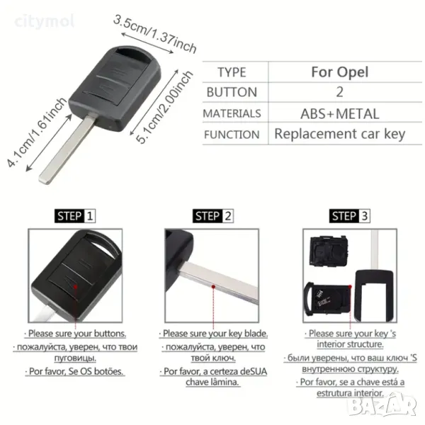 Кутийка за ключ с острие и два бутона за Opel Corsa C, Meriva, Agila, Combo