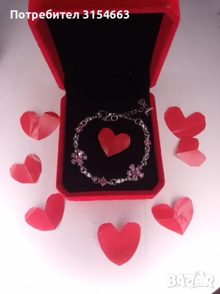 Гривна с кристали. Дължина на гривната 19 см + 5 см удължение. Размер на цветята 1 см на 1 см.