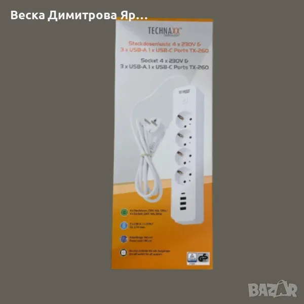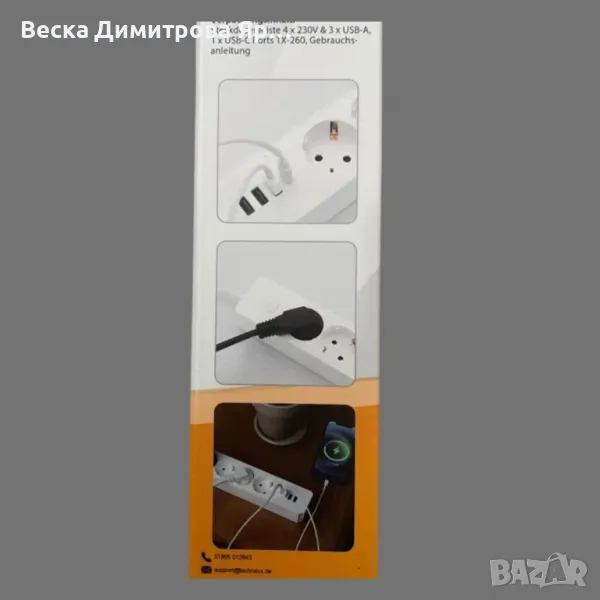 Разклонител 4 х 230V и 3 x USB-A, 1 х;