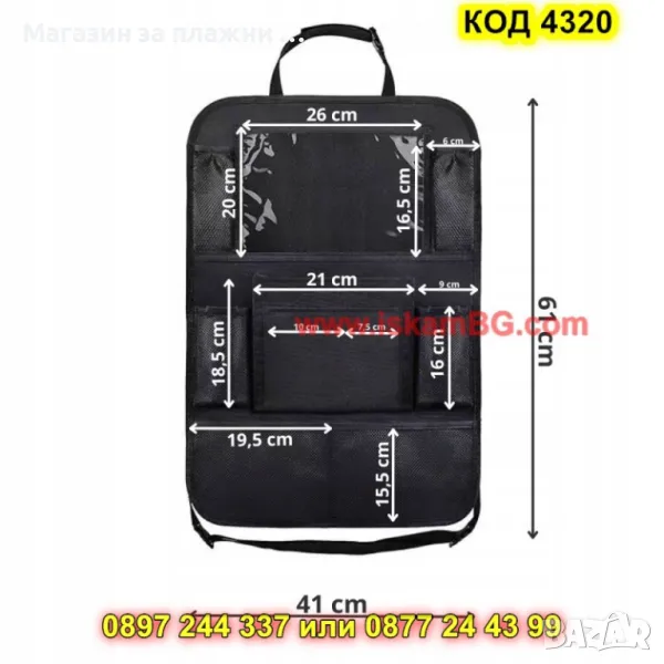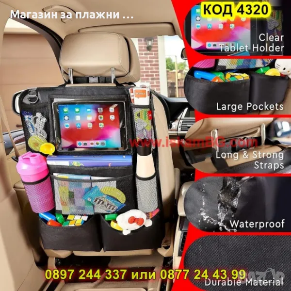 1 брой протектор органайзер за седалка с PVC джоб за таблет