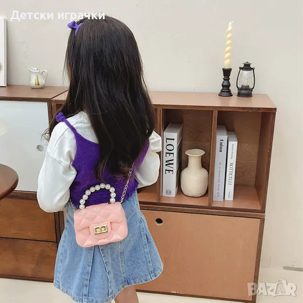 Детска чанта Mini Jelly перлена дръжка и сваляща се верижка.