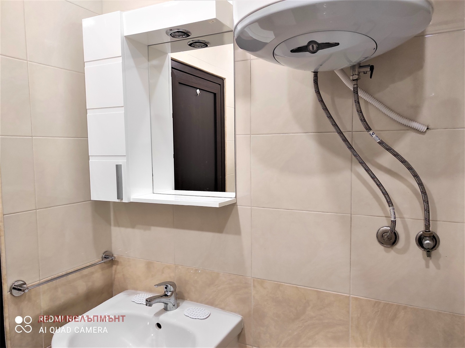 Разпределението му е входно антре с портманто и шкаф, хубав голям хол с кухненски бокс, много практична южна тераса, голяма непреходна спалня и баня с тоалетна.. Отоплението и охлаждането е с климатици, а топлата вода на бойлер.