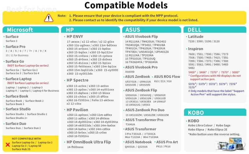 M1 съвместим с устройства от други марки. Преди покупката се уверете, че вашето устройство поддържа MPP писалка (A Pen Protocol от Microsoft).