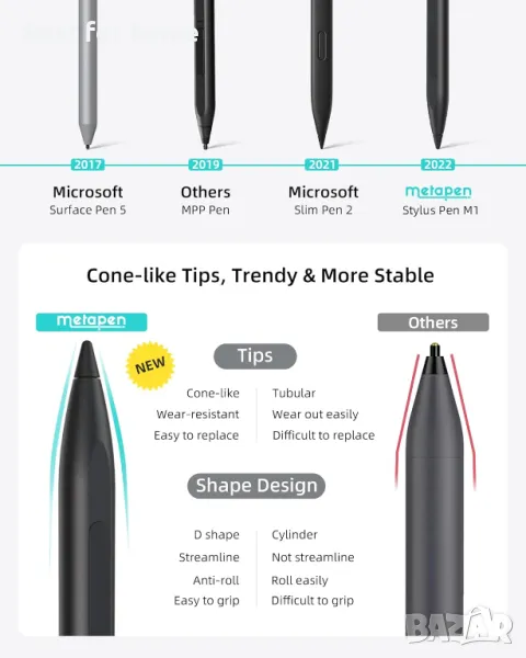 Metapen Stylus Pen M1 за Microsoft Surface, HP, ASUS, DELL, Acer, SONY и ViewSonic