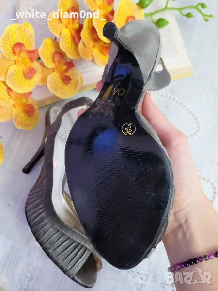 Дамски сребристи сандали на ток номер 38 → Обява 49188627