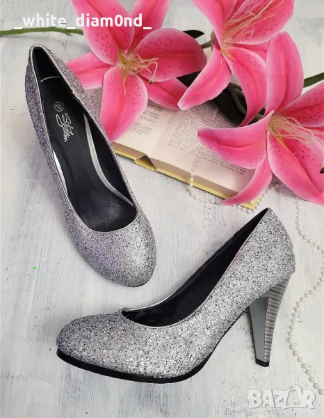Сребърни дамски обувки на ток номер 38 , снимка 1 - Дамски обувки на ток - 49188641 Сребърни дамски обувки на ток номер 38 , снимка 2 - Дамски обувки на ток - 49188641 1/2