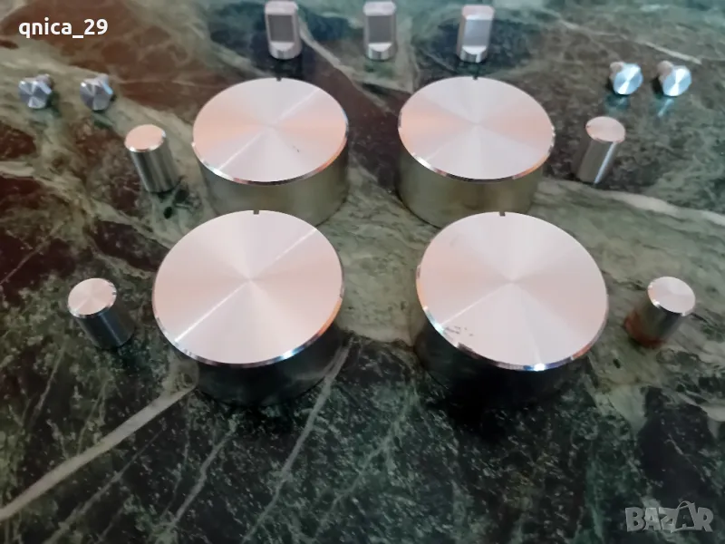 Предлагам декоративни врътки за потенциометрите и селекторите за усилвател Marantz 1090 съвместими и с други модели на марката.