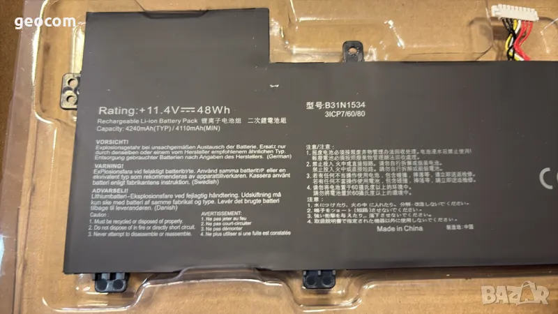 Напрежение: 11.4V. 48Wh. Asus N:B31N1534.