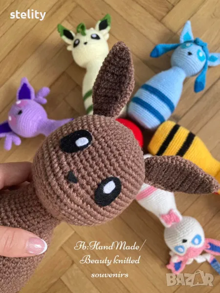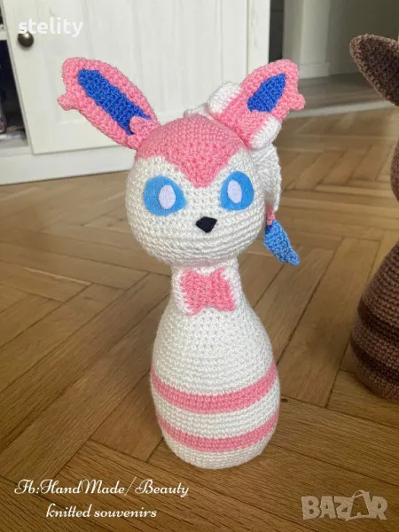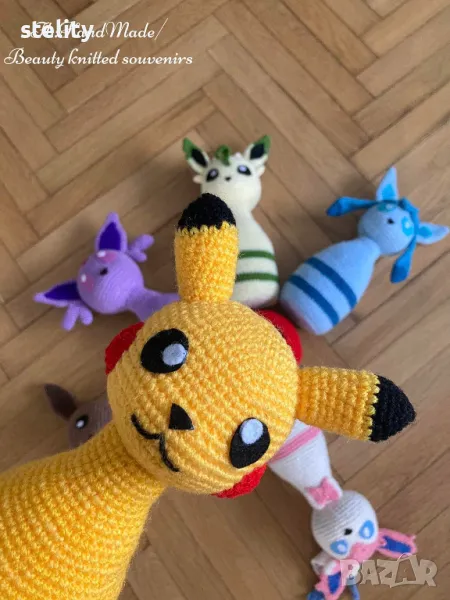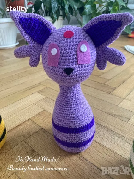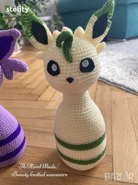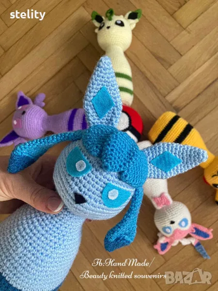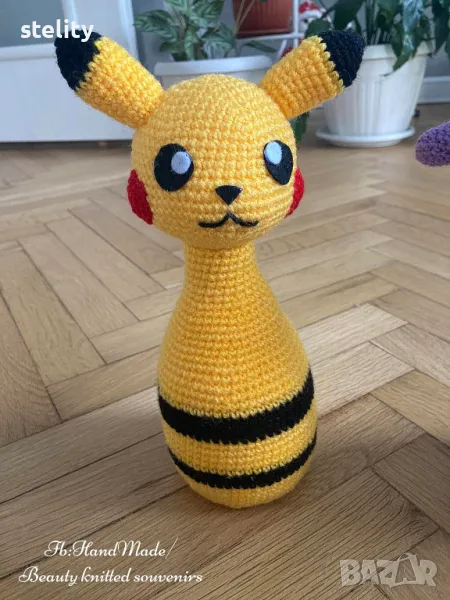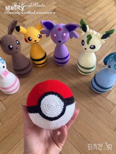 Кеглите са с височина около 22 см. Изработени от акрилна прежда.