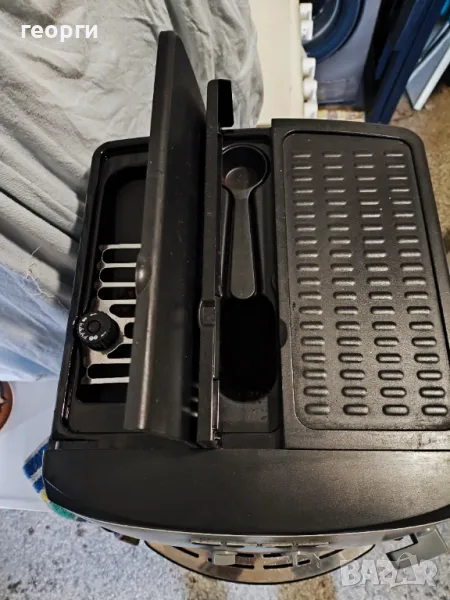 Перфектно работеща машина. Страхотно кафе. Използвана само със минерална вода. Може да работи както с кафе на зърна, така и с мляно кафе. Можете да приготвите две кафета едновременно. Регулиране дължината на кафето. Регулатор за силата на парата. Контейнер за кафе на зърна. Резервоар за вода с вместимост 1.8 литра. Програма за почистване на варовик. Подвижна тавичка за отцеждане на водата. Поставка за чаши. Функция пестене на енергия. Размери (Ш х Д х В): 28.5 х 37.5 х 36 см. Тегло: 10 кг. Прегледана от сервизен техник и готова за употреба.