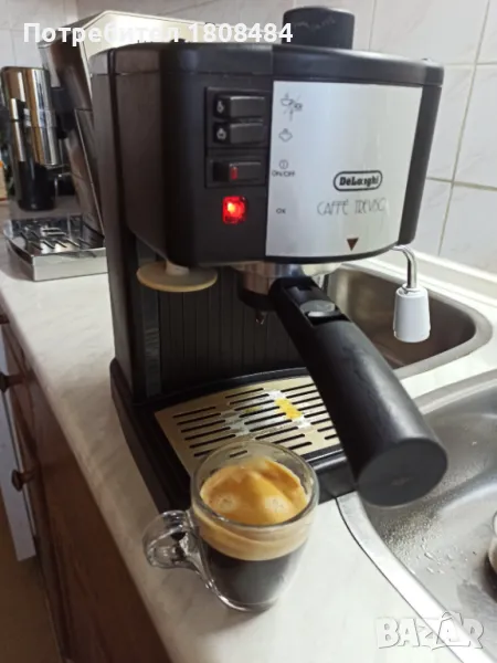 Кафемашина Делонги Тревизо с ръкохватка с крема диск, работи отлично и прави хубаво кафе с каймак