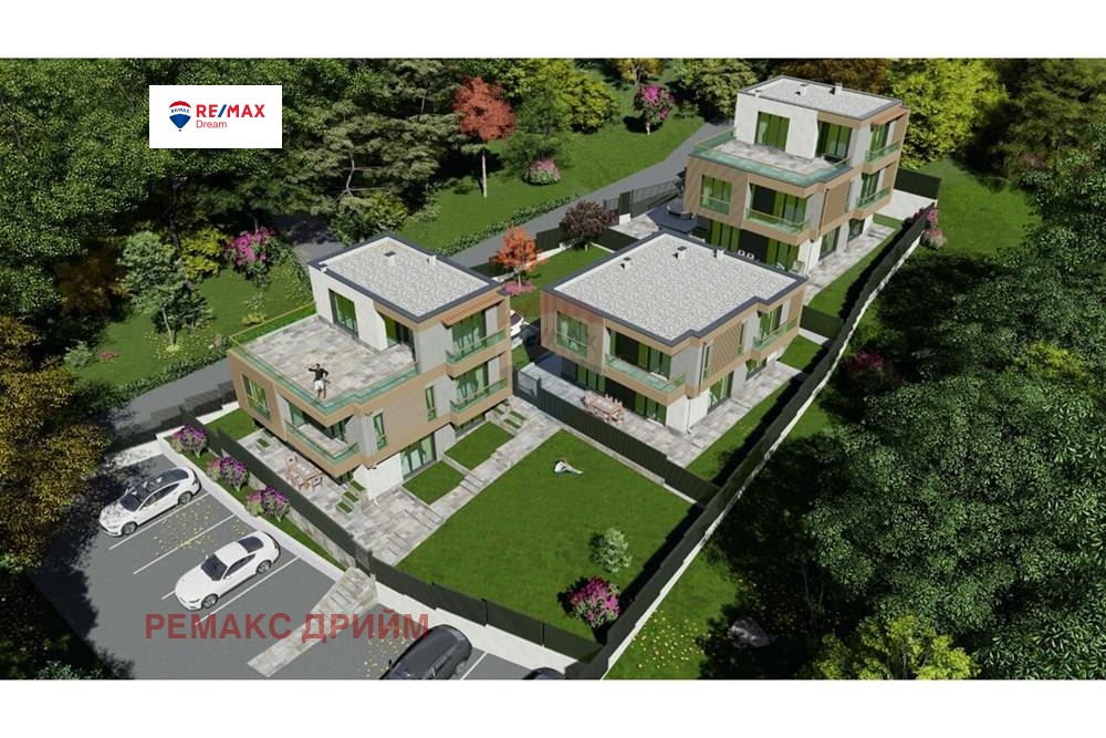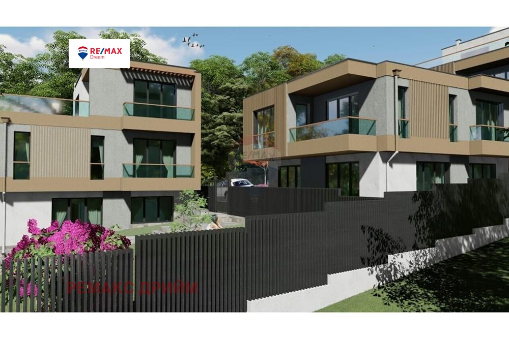 Прилежащият самостоятелен двор е 330 кв. м, част от общ парцел 1000 кв. м, в който ще има още две къщи, всяка от които с обособени паркоместа и зелени площи.
