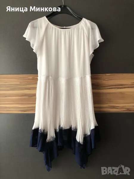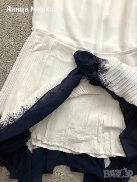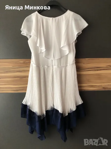 В отлично състояние, без следи от употреба. Обличана 1 път за повод. Дължина на роклята- 85 см, от подмишница до подмишница- 44 см едностранно. Изпращам с преглед и тест.