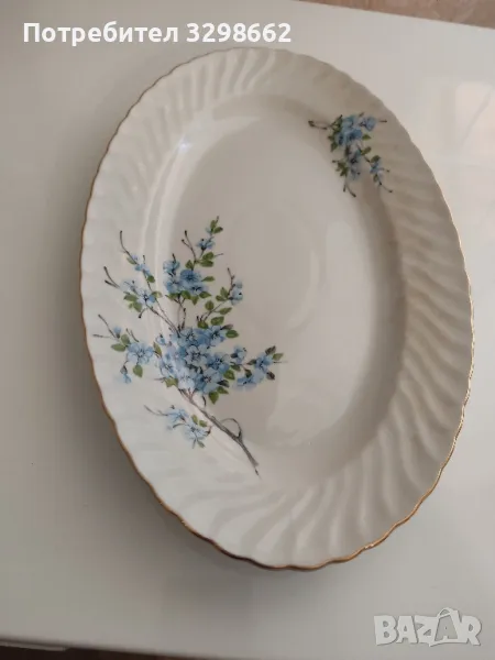 Продавам чисто нов голям български сервиз за хранене от 25 части от соца.Плюс сервиз за чай към него-6 бр.чаши и чинийки. Сервиза включва: супник с капак,сосиера, солница. 1бр.чиния дълбока за салата,1 бр.голямо плато,6 бр.по-малки чинии-19см., 6бр.чинии -21см, 6 бр. чинии дълбоки-21 см. и 2 бр. чинии елипсовидни.