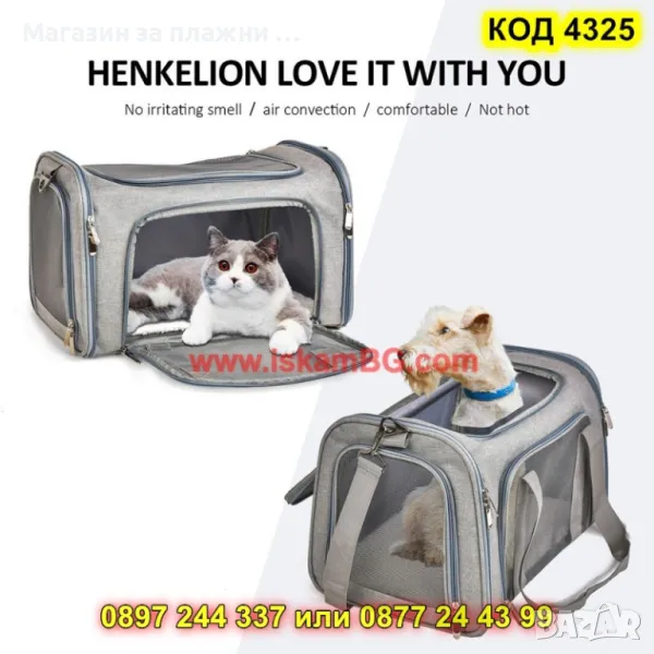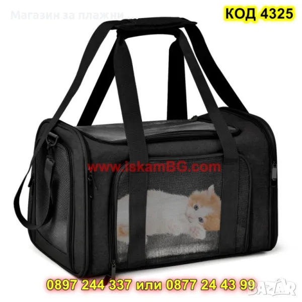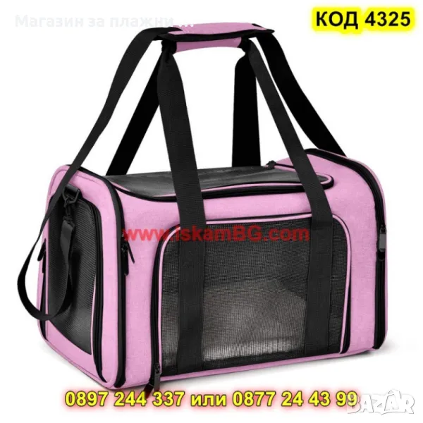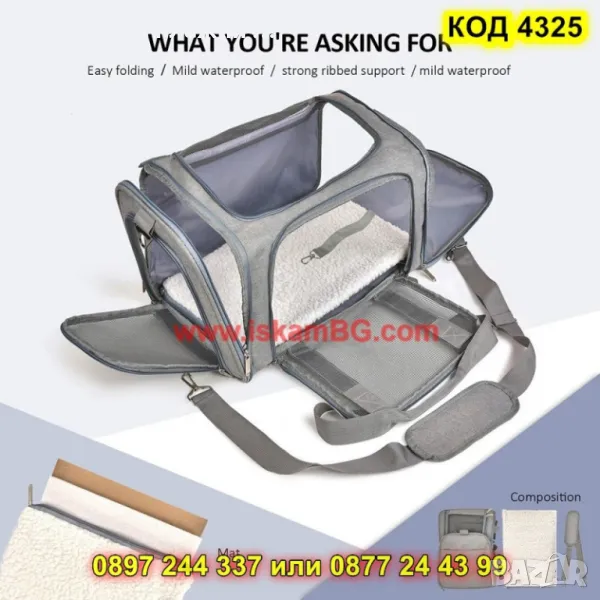 Големите мрежести отделения, вградени от четирите страни, осигуряват достатъчен и приятен приток на въздух . Горният, предният и страничният вход се отварят с цип и позволяват бързо и лесно влизане и излизане.