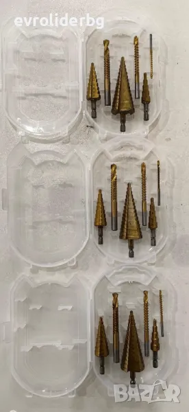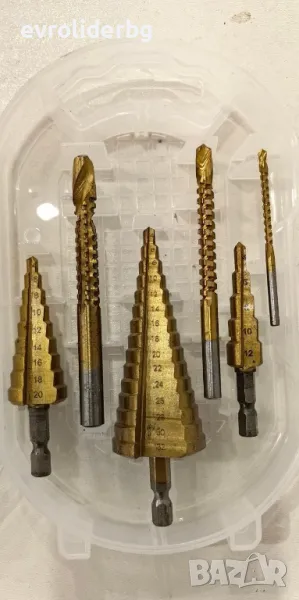 ШОК ЦЕНА!!! СТЪПАЛОВИДНИ/КОНУСНИ И ФРЕЗЕРИ СВРЕДЛА-БУРГИИ 4-32ММ. 6 БРОЯ КОМПЛЕКТ.