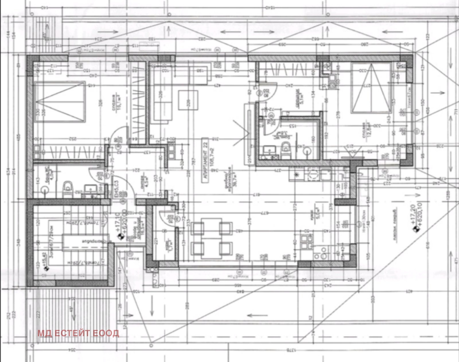 Чиста площ е 108.7 м2, Бонус тераса 80м2.