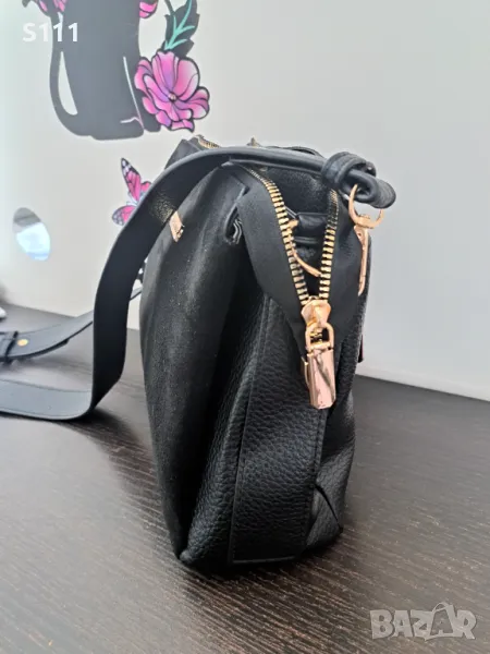 Уникална дамска чантичка M&Mz BAGS за през рамо. Чантата е много лека, удобна и практична. Побира доста неща и има много отделения и джобове. Лицевата част е еко велур, а останалата част много мека еко кожа. Отвътре има три отледения и един джоб с цип. Отвън също има джоб с цип. Златист обков и метални елементи. Дръжката може се да регулира. Размери: дължина - 25.5 см, височина - 20.5 см, дъно - 8.5 см.