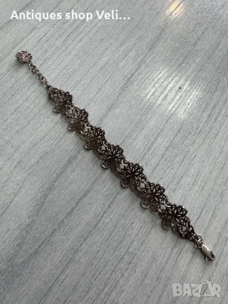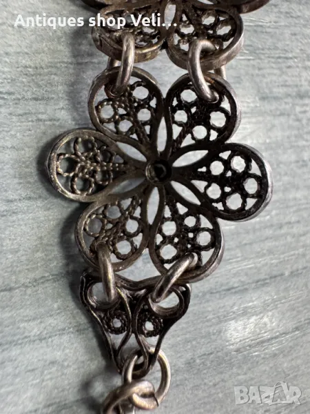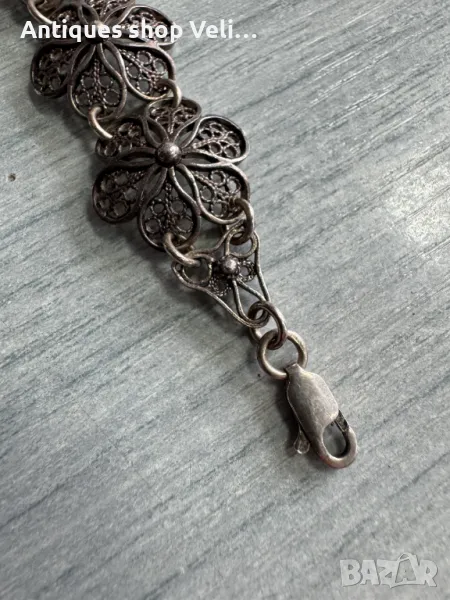 Стара ръчно изработена филигранна сребътна гривна. Добро състояние. Предлагаме доставка с Еконт и лично предаване за градовете Велико Търново и Сливен! Дължина от 17 до 19,5см.