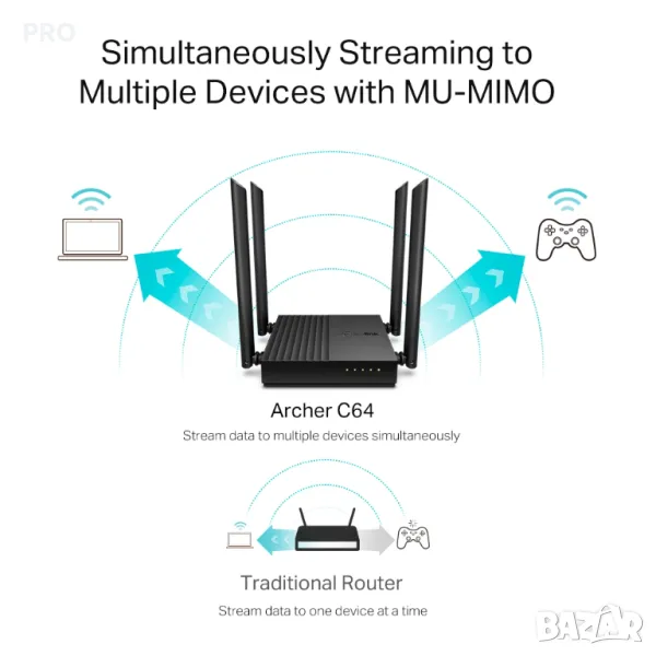 - MU-MIMO - Лесно и удобно управление на мрежата. С TP-Link Tether MU-MIMO постига 2Х ефективност чрез свързване с до 2 устройства наведнъж