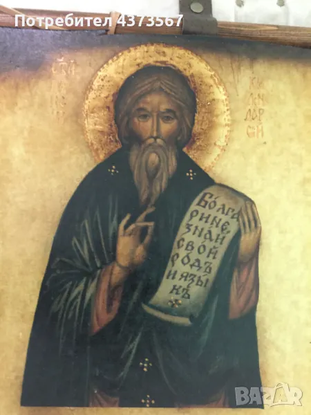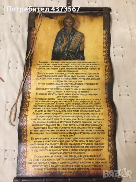 Пано „История“ с икона „Паисий Хилендарски“ , техника: пергамент, акрил, художник : Огнян Андреев