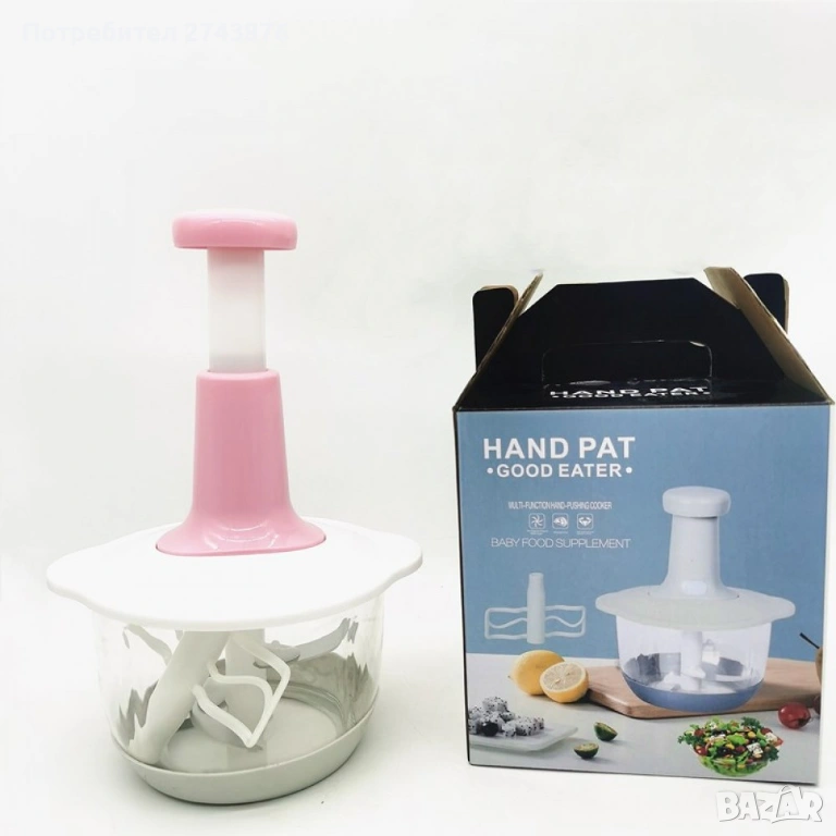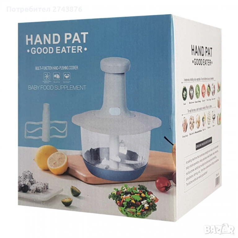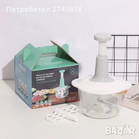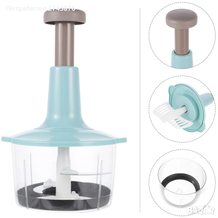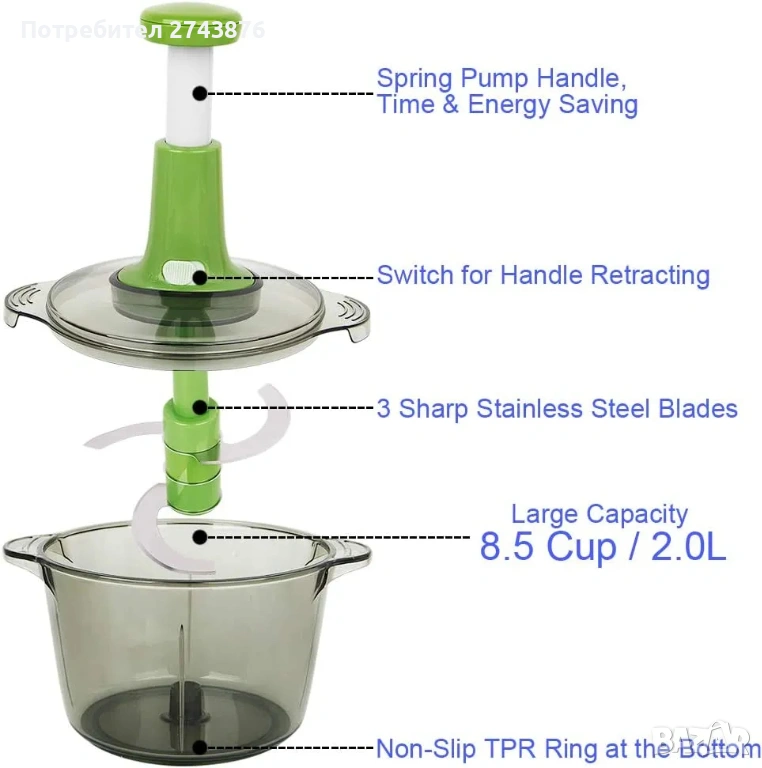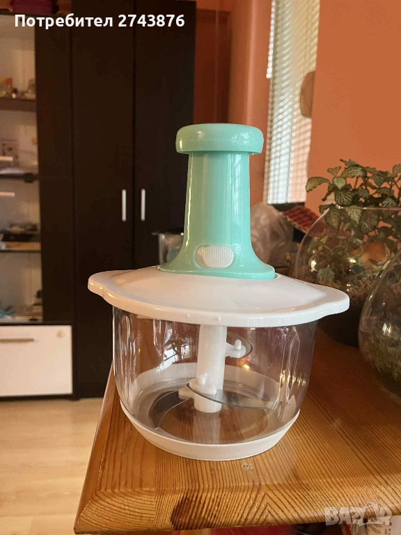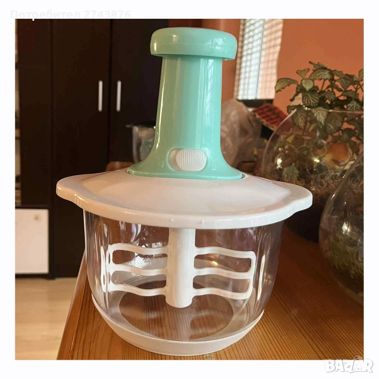 Съвременен и практичен, чопърът е с прозрачна купа,