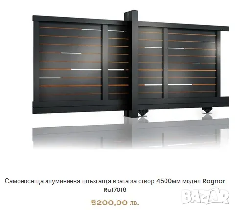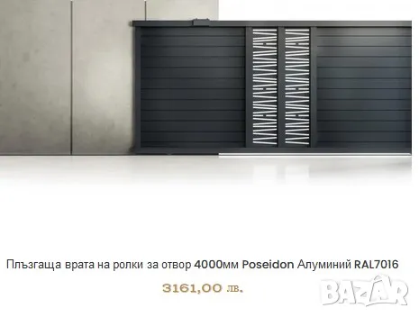 – цената на вратите не включва алуминиеви колони 150х150х3мм – те са опция, цената на комплект колони е 868,00лв