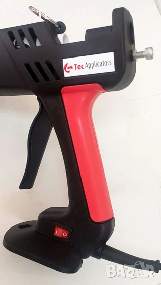 При първоначалното включване на пистолета към ел. мрежа този нагревател работи „ударно“ и черпи мощност 300 W - до достигане на температура от 190 градуса, необходима за разтопяване на пластмасовата пръчка.