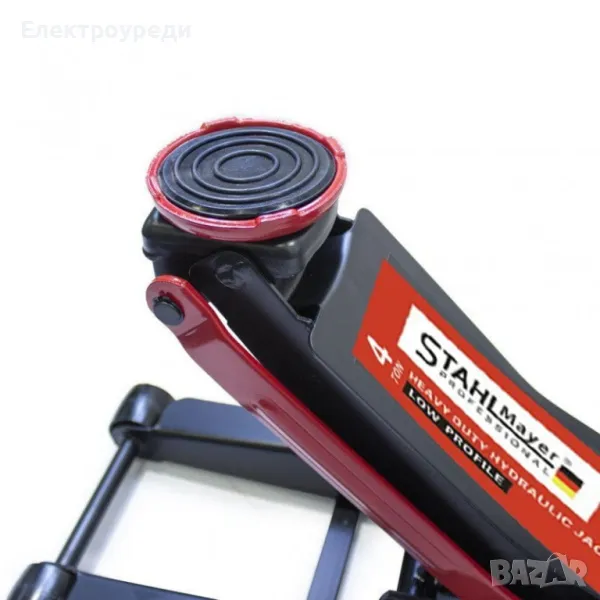 Професионален нископрофилен крик 4 тона със две помпи STAHLMAYER позволява работа във различни минимални – максимални диапазони ( 83 mm. до 465mm.). Крикът е идеален за ниски автомобили и такива със спортно окачване. Изработен е от устойчив и здрав материал, който може да се ползва в различни атмосферни условия. Крикът има колела, които улесняват предвижването му и отговаря на строги стандарти за безопасност.