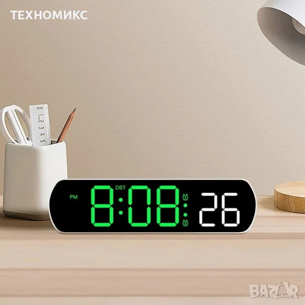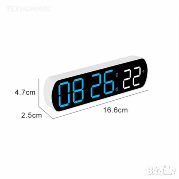 Функции: Час, дата, температура (°C/°F), аларма, нощен режим;