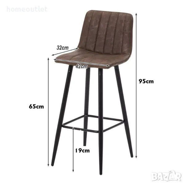 Този бар стол е с размери 32 x 42 x 95 см и височина на седене от 65 см.