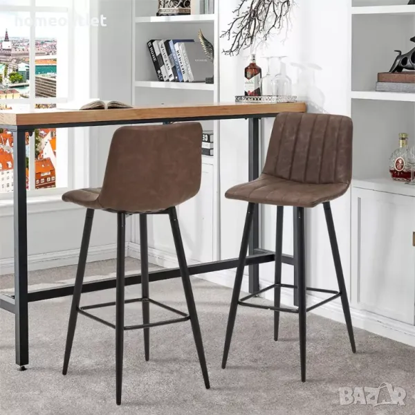 Бар столът с висока облегалка е с дамаска от висококачествена изкуствена кожа за удобно и меко усещане.