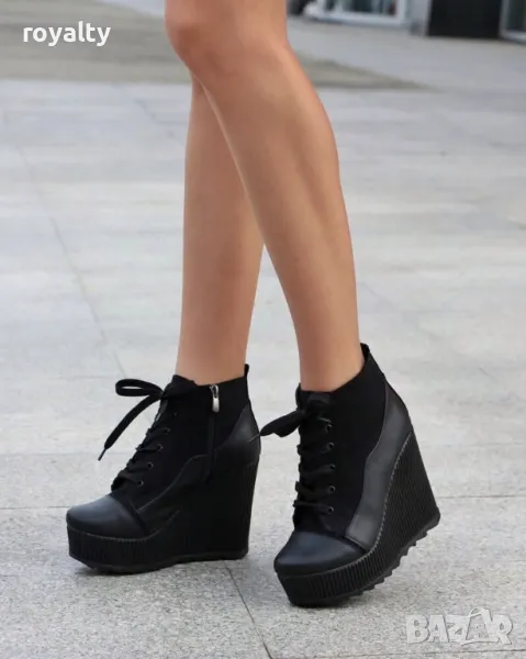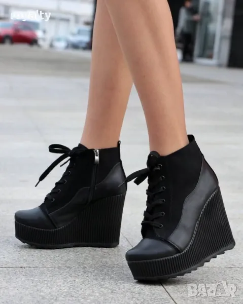 Боти на платформа - Кожа, Велур → Обява 49197154