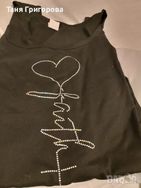Нов, необличан. Надписът е в бяло и е като на третата снимка. Материята не е памук, но е приятна, няма да се отпуска и избелява.