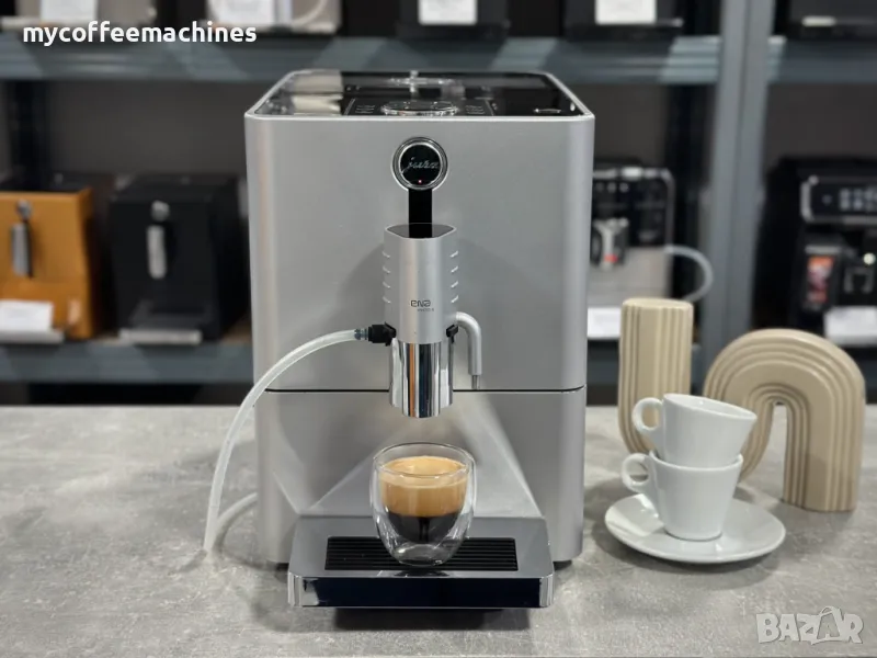 Кафемашина JURA Ena Micro 9Кафемашина Jura ENA Micro 9 е най-малката автоматична кафемашина с функция за капучино в света, създадена да впечатлява с невероятен вкус и удобство. Благодарение на иновативната технология за разпенване, тя приготвя кремообразно капучино и лате макиато само с едно докосване. Компактният и размер я прави идеална за всеки дом, без компромис с качеството на напитките.