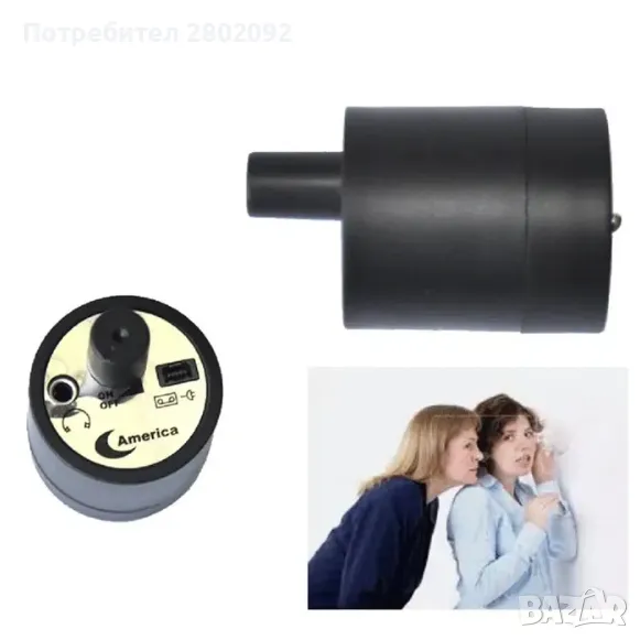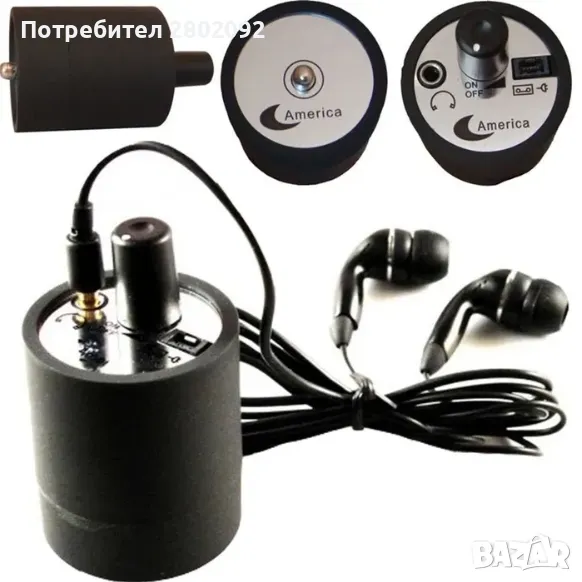 3. Използване: Прикрепете подслушвателя към стената или друг материал, през който искате да подслушвате.