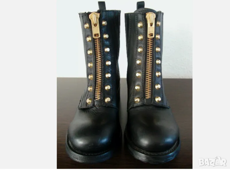 Дизайн: Ботите са с мотиви от военните кубинки, с цип отпред, за да се обуват и събуват лесно.
