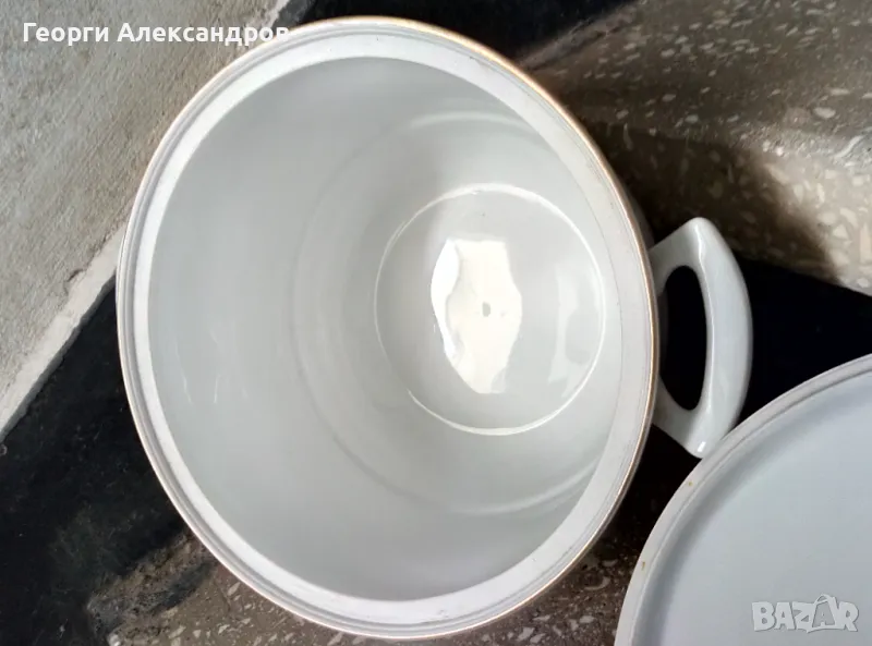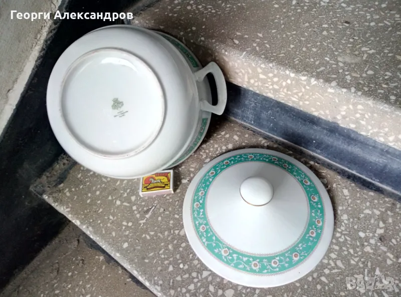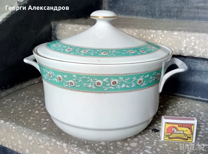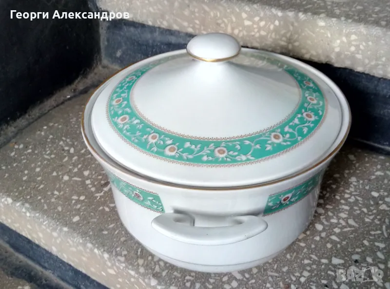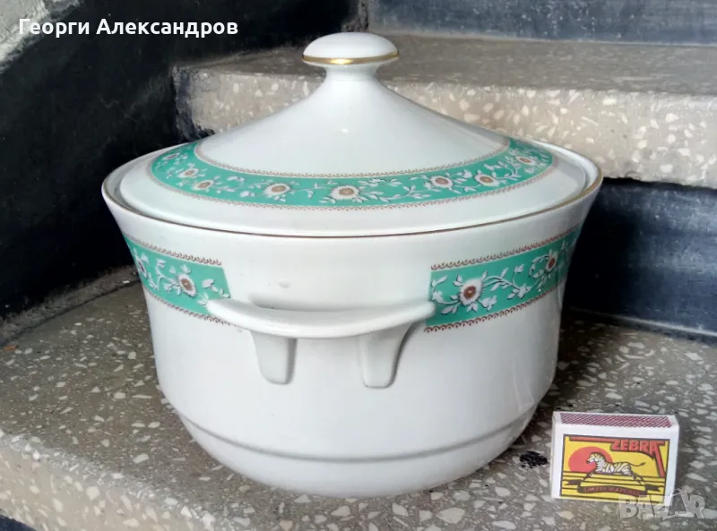 JLMENAU Graf Von Henneberg - Porzellan 1777 Made in German Democratic Republic - един аристократичен стар произведен преди повече от половин век супник от най-фин марков немски порцелан с прекрасен флорален рисунък. Колекционерско попадение, идеално и за ползване, подарък, тематична ретро - арт домашна декорация... Състояние ОТЛИЧНО, БЕЗ забележки - видно, според снимките! Налична фабрична маркировка на старинната фирма от Тюрингия. С оригиналния му капак. Диаметър горе: 22см., височина: 24см. СИМВОЛИЧНА цена!!! Изпращам добре опакован от мен по Еконт с Преглед и отстъпка-транспорт.