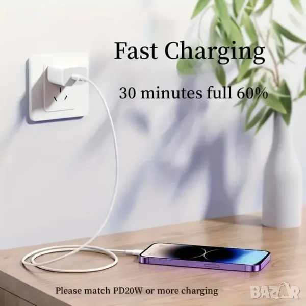 • За да зареждате бързо вашето Apple устройство с Lightning порт, се нуждаете от захранване с мощност от поне 18W