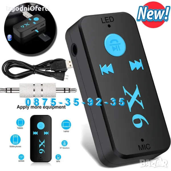 - Bluetooth Audio Aux Adapter (Възпроизвеждане на музика от телефон, таблет или друго устройство с блутут).