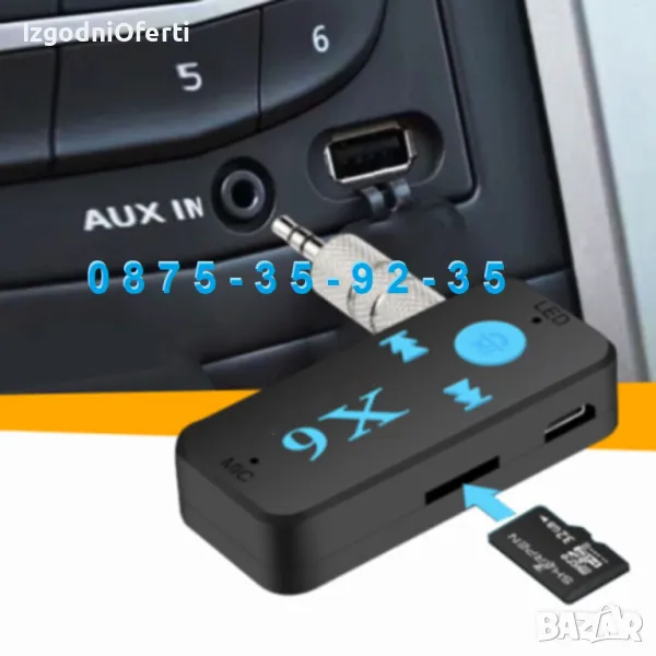 X6 Bluetooth Audio Aux Adapter блутут адаптер с микрофон и Карта Памет