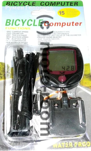 Бюджетен, водоустойчив велокомпютър с кабел, 15 функции. Настройка на