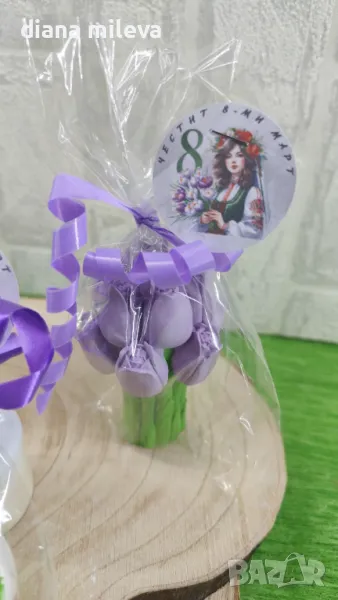 Комплектът включва картичка и гипсокерамични лалета и осмица, стилно опаковани в специална кутия с панделка, която е готова за подаряване!!!