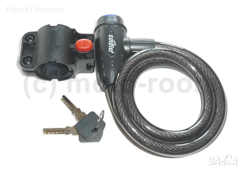 Гъвкаво стоманено въже с пластмасова обвивка и ключалка със секретен ключ.