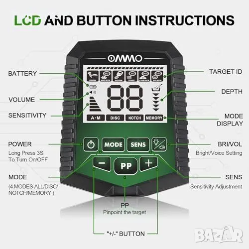 Нов OMMO металдетектор за възрастни - сгъваем, високочувствителен