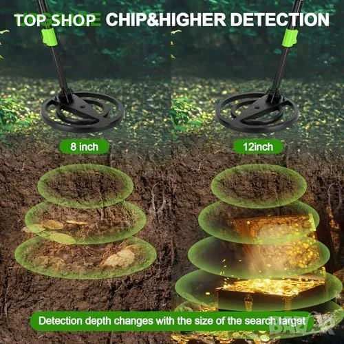 Включени аксесоари: 2x 9V батерии, чанта за носене, сгъваема лопата, слушалки