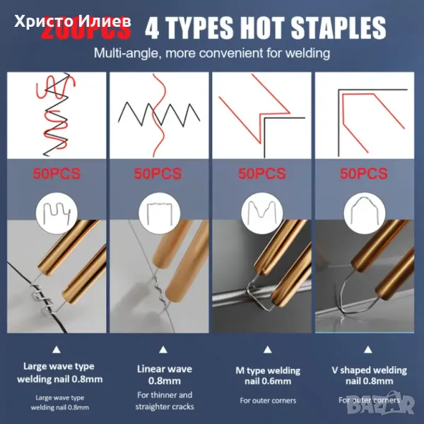 Поялник за пластмаса Мини горещ телбод Безжична машина за заваряване на пластмаса с 200бр скоби