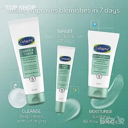 Формулата с тройно действие се бори с пробивите, следите от петна и успокоява чувствителната кожа.